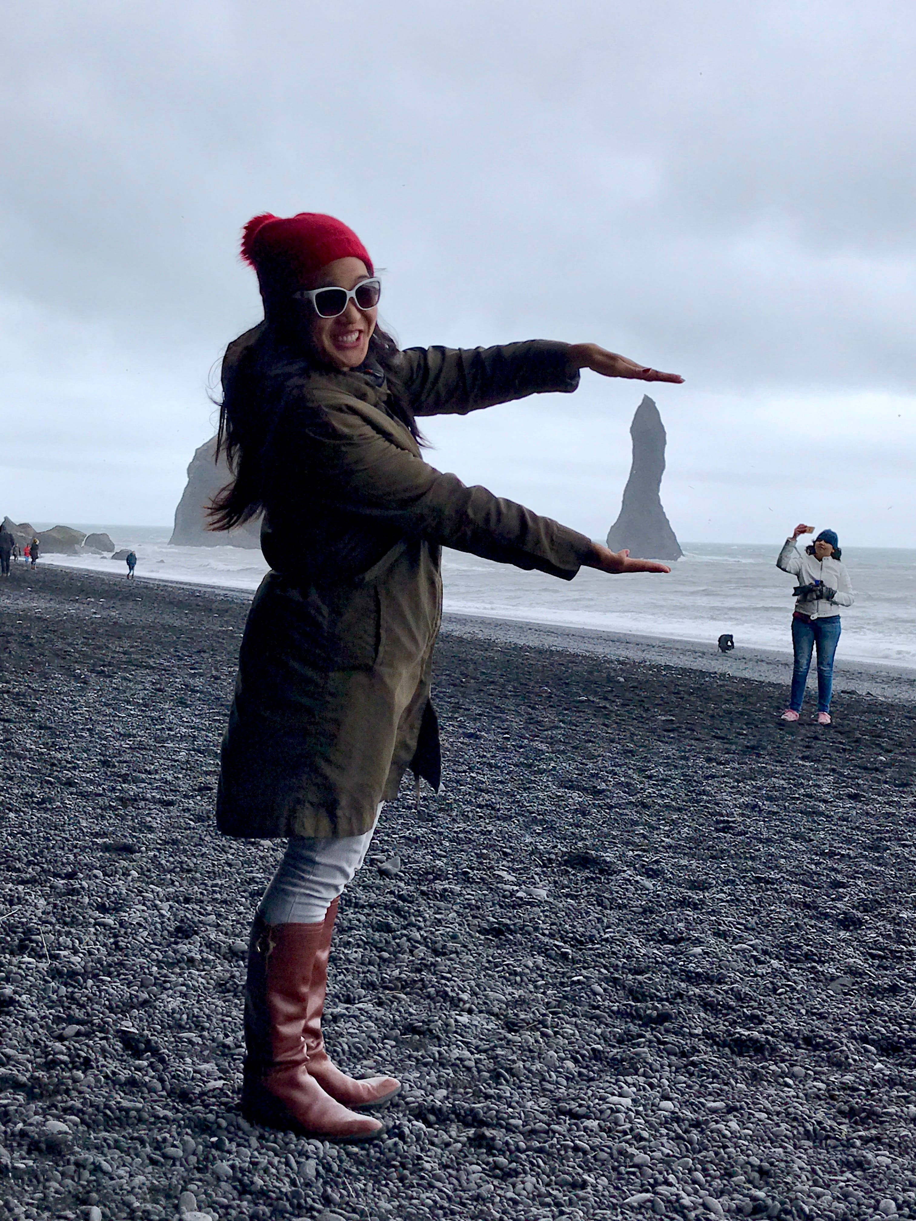 Nếu nhìn trên bản đồ Iceland bạn sẽ nhìn thấy bãy biển này nằm trồi ra xa nhất về phía Nam Iceland và „gió Iceland“ từ 2 hướng đông và tây đều lấy bờ biển này làm đích hẹn hò. Bởi vậy rất hiếm khi bạn thấy một bãi biển Reynisfjara yên ả. Trải nghiệm gió và ngắm sóng biển đuổi nhau đập vào bờ cát là một trong những thú vui của du khách viếng thăm nơi đây. Có thể đó cũng là lý do mà bãi biển này có tên gọi là Reynisfjara, (Tiếng Iceland: Reyna là cố gắng, phấn đấu, kiên cường… và fjara nghĩa bãi biển, bờ biển vậy có thể gọi bãi biển này là Bãi biển hiên ngang được không nhỉ)